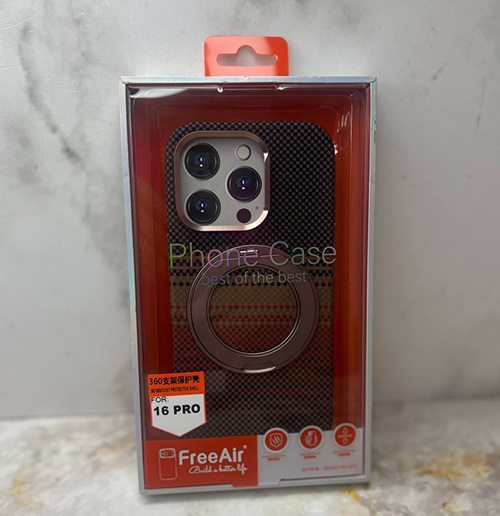 Задняя крышка Iphone 15 Pro Max FeeAir под карбон, MagSafe-подставка, коричневая