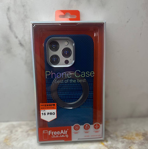 Задняя крышка Iphone 15 Pro Max FeeAir под карбон, MagSafe-подставка, синяя