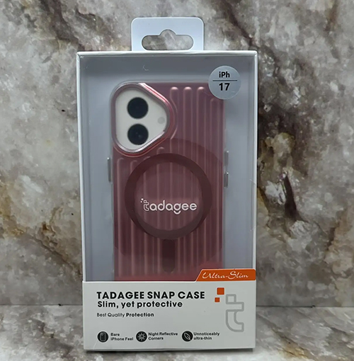Задняя крышка Iphone 15 Pro Max Tadagee Snap Case с MagSafe, металлическая оконтовка камеры, ребристый рисунок, розовая