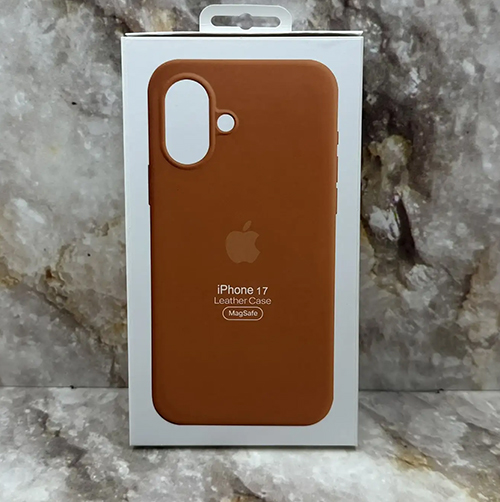 Задняя крышка Iphone 15 Pro Max Leather Case под кожу, с лого, magsafe, в упаковке, коричневая