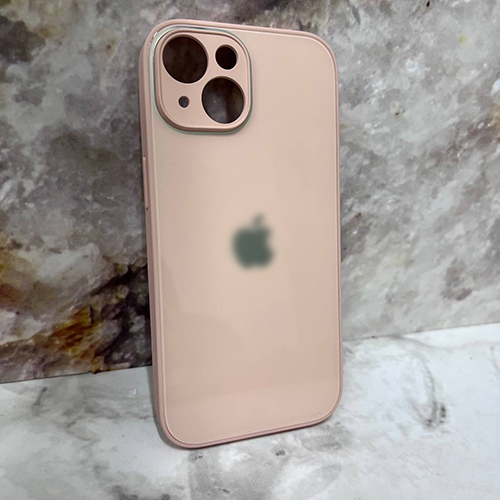 Задняя крышка Iphone 15 Pro Max стеклянная, силиконовый борт, окантовка камеры и защитой, с лого, персиковая