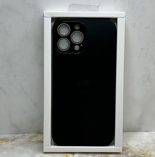 Задняя крышка Iphone 15 Pro Max Silicone Case, стеклянная с MagSafe+Анимация, защита камеры, в коробке, черная