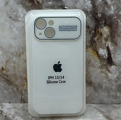 Силиконовый чехол Iphone 15 Pro Max SILICONE CASE, AUTO FOCUS, с логотипом, в блистере, белый