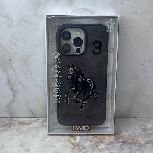 Задняя крышка Iphone 16 Pro Max RMO SB под кожу с тканевым рисунком, черная лошадь