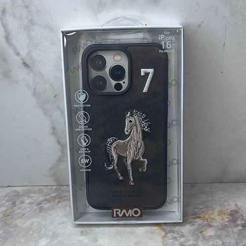 Задняя крышка Iphone 16 Pro Max RMO SB под кожу с тканевым рисунком, черная лошадь