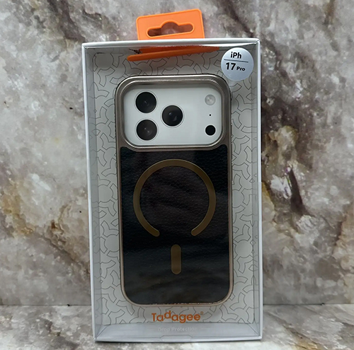 Задняя крышка Iphone 16 Pro Max Tadagee под кожу с MagSafe, металлическая оконтовка камеры, бархат внутри, черная
