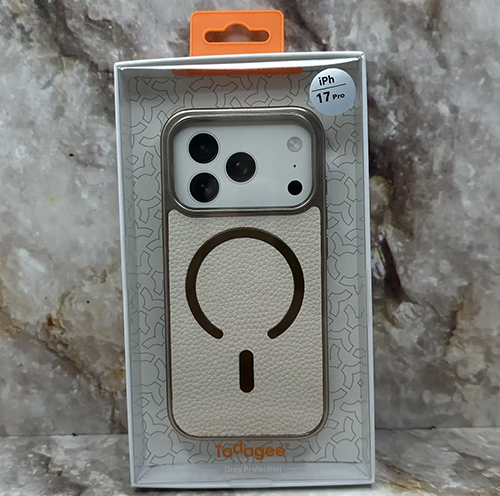 Задняя крышка Iphone 16 Pro Max Tadagee под кожу с MagSafe, металлическая оконтовка камеры, бархат внутри, бежевая