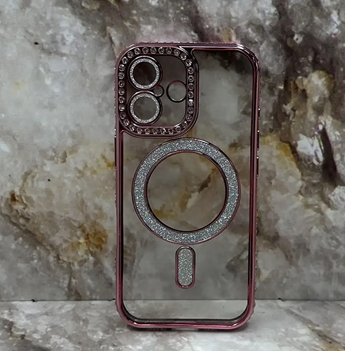 Силиконовый чехол Samsung Galaxy A36 прозрачный, цветной борт со стразами, MagSafe из блесток, розовый