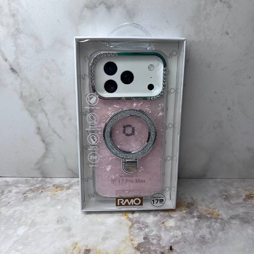 Задняя крышка RMO Iphone 17 Air перламутровая с Magsafe из блёсток, розовая с сердечками