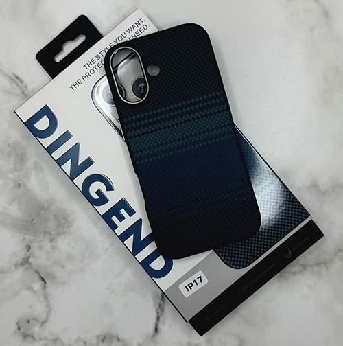 Задняя крышка Iphone 17 Air DINGEND под карбон с MagSafe, металлическая оконтовка камеры, синяя