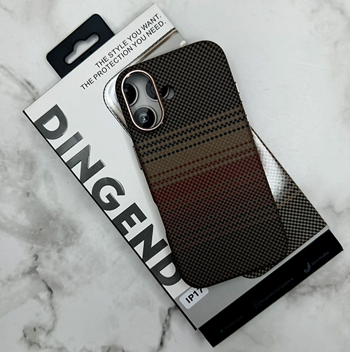 Задняя крышка Iphone 17 Air DINGEND под карбон с MagSafe, металлическая оконтовка камеры, коричневая