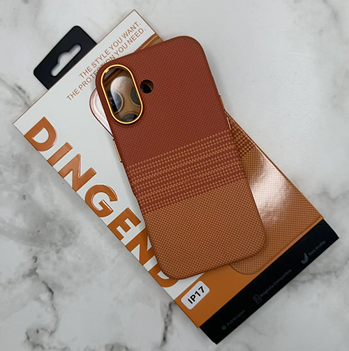 Задняя крышка Iphone 17 Air DINGEND под карбон с MagSafe, металлическая оконтовка камеры, оранжевая в полоску