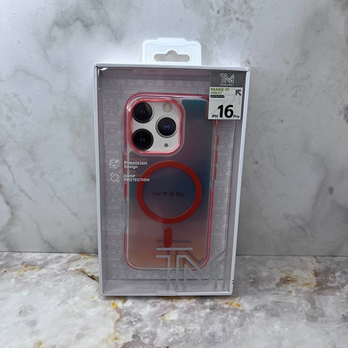 Задняя крышка iphone 17 прозрачно - перламутровая, с Magsafe, цветной борт, оранжевая