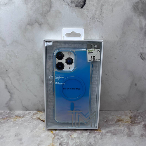 Задняя крышка iphone 17 прозрачно - перламутровая, с Magsafe, цветной борт, голубая