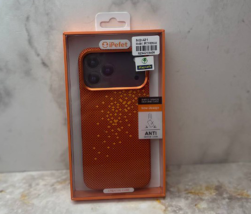 Задняя крышка Iphone 17 FeeAir под карбон, MagSafe-подставка, оранжевая