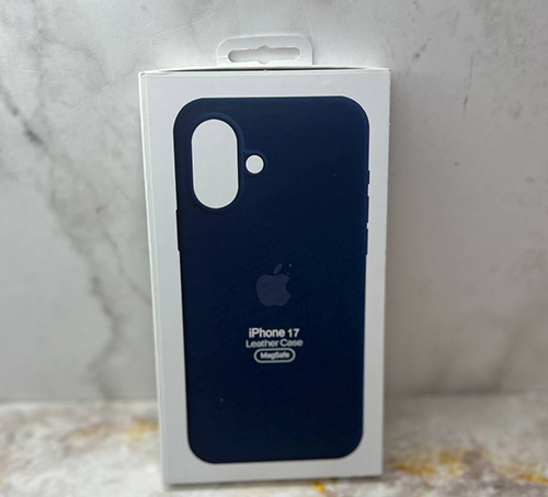 Задняя крышка Leather Case Iphone 17 под кожу с логотипом и MagSafe, синяя