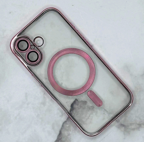 Силиконовый чехол Electro Flex Iphone 17 прозрачный в сеточку, с защитой камеры, MagSafe, розовое-золото