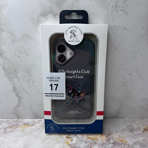 Задняя крышка Iphone 17 pro City Knights Club, под кожу, в коробке, всадник на лошади, темно-синяя