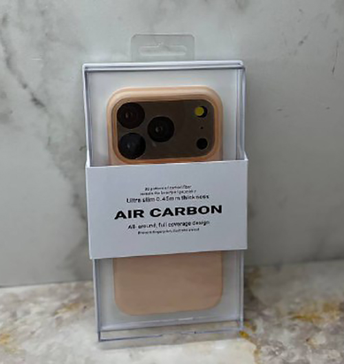 Задняя крыша Iphone 17 Pro AIR CARBON под карбон, защита камеры, в коробке, персиковая