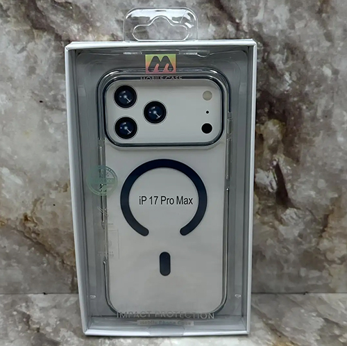Задняя крышка Iphone 17 Pro MOBILE CASE прозрачная с MagSafe, цветной борт, в коробке, синяя