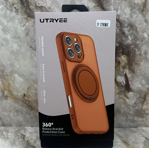 Задняя крышка UTRYEE Iphone 17 Pro матово-прозрачная, вращающийся MagSafe-подставка, оранжевая