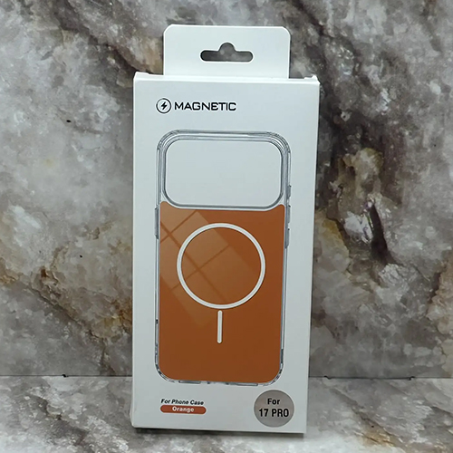 Задняя крышка Iphone 17 Pro MAGNETIC с MagSafe, прозрачный силиконовый борт, в коробке, оранжевая