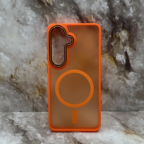 Задняя крышка Iphone 17 Pro матово-прозрачная, силиконовый борт, имитация MagSafe, оранжевая