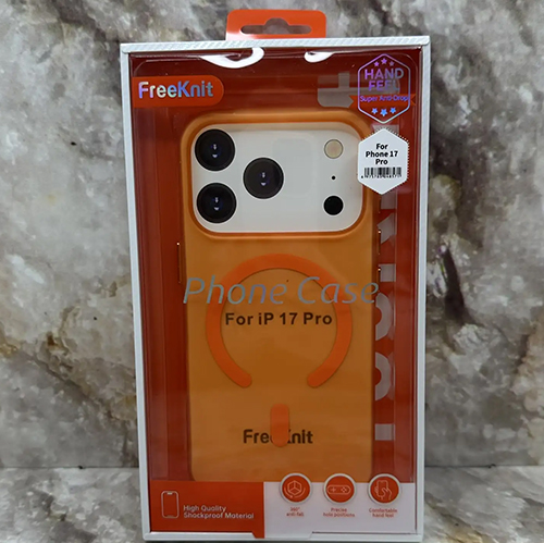 Задняя крышка Iphone 17 Pro Max FreeKnit матово-прозрачная, MagSafe. металлические кнопки, оранжевая