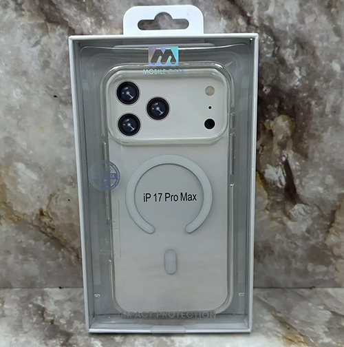 Задняя крышка Iphone 17 Pro Max MOBILE CASE прозрачная с MagSafe, цветной борт, в коробке, белая