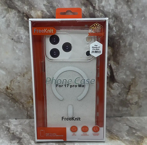 Задняя крышка Iphone 17 Pro Max FreeKnit прозрачная с блестками, с MagSafe, в коробке, белая