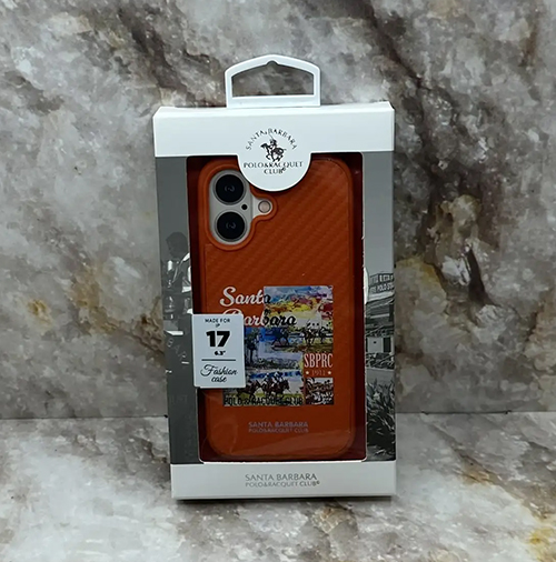 Задняя крышка Iphone 17 Pro Max SB Polo Racquet Club, под карбон с принтом, бархат внутри, в коробке, оранжевая