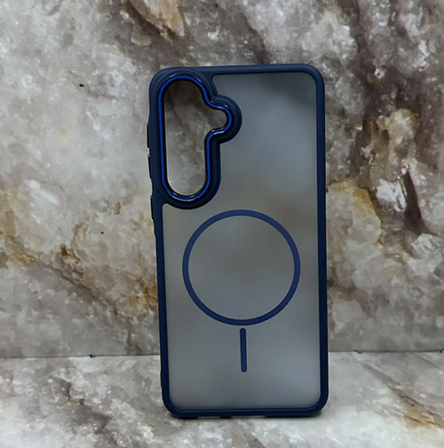 Задняя крышка Iphone 17 Pro Max матово-прозрачная, силиконовый борт, имитация MagSafe, синяя