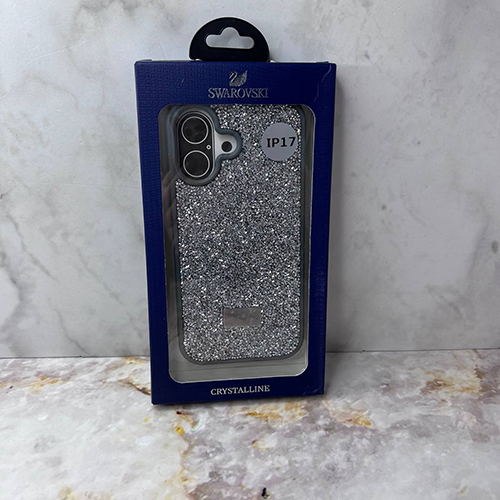 Силиконовый чехол iphone 17 "SW" плотный, поверхность из страз, в коробке, серебро