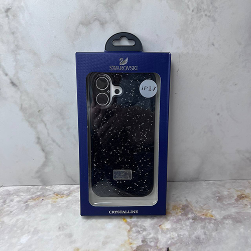 Силиконовый чехол iphone 17 "SW" плотный, поверхность из страз, в коробке, черный