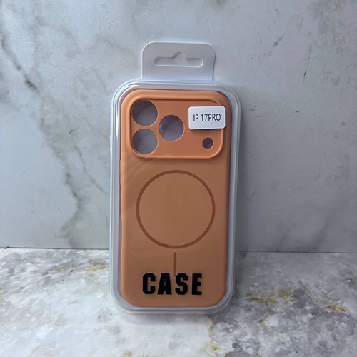 Силиконовый чехол CASE Iphone 17 Pro с MagSafe, защита камеры, бархат внутри, оранжевый