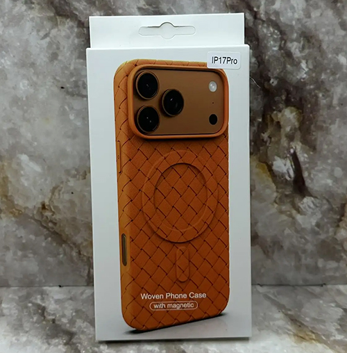 Силиконовый чехол Iphone 17 Pro Max WOVEN CASE, плетеный под кожу, с MagSafe, в коробке, оранжевый