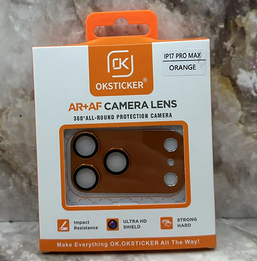 Защитное стекло на камеру Iphone 17 Pro Max OKSTICKER металлическое, в упаковке, оранжевое