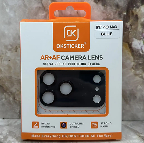 Защитное стекло на камеру Iphone 17 Pro Max OKSTICKER металлическое, в упаковке, синее