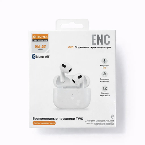 Беспроводные наушники HAIMES TWS, микрофон ENC, сенсорное управление (HM-401), белые