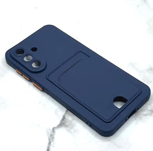 Силиконовый чехол Huawei Honor 600 LITE матовый soft-touch, цветные кнопки, с визитницей, темно-синий