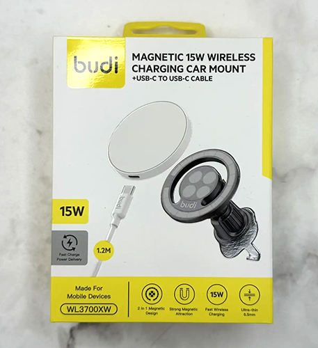 Автомобильный держатель Budi 2в1 Magnetic, кабель Type-C для Type-C 1,2М 15W, на решетку вентиляции (WL3700XW)