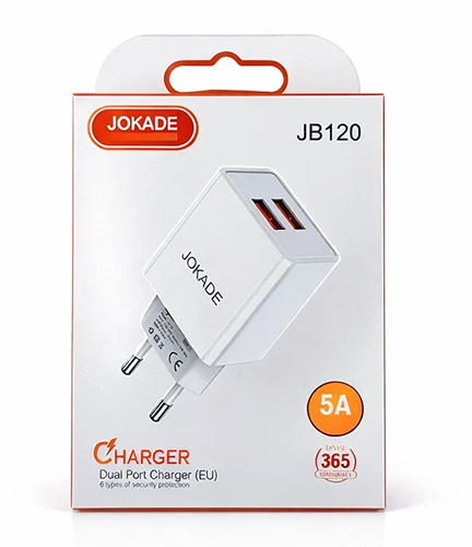 Блок питания сетевой JOKADE 2 USB 5A, (JB120), белый