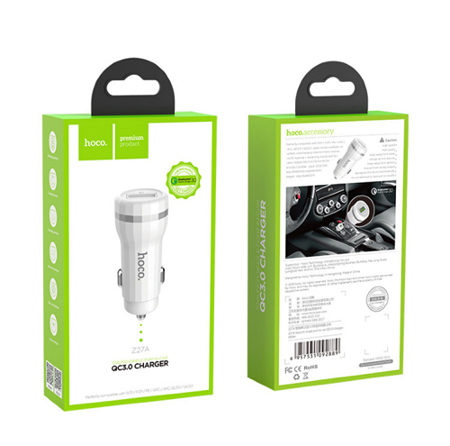 Блок питания автомобильный 1 USB HOCO, Z32A, Flash power, 4000mA, металл, QC3.0, цвет: черный