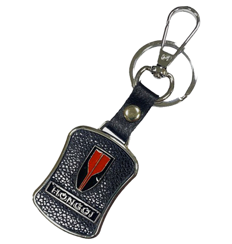 Брелок металлический с кожаной вставкой, карабином, HONGQL