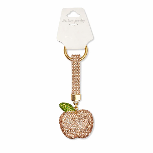 Брелок с карабином яблоко из страз, золотой