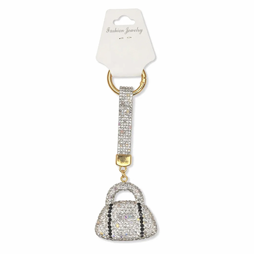 Брелок с карабином сумка из страз, серебристый