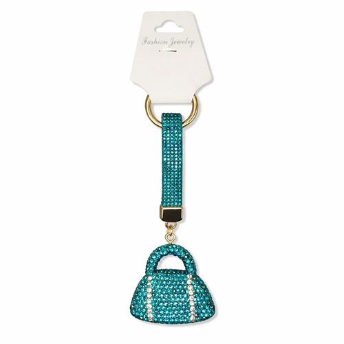 Брелок с карабином сумка из страз, зеленый