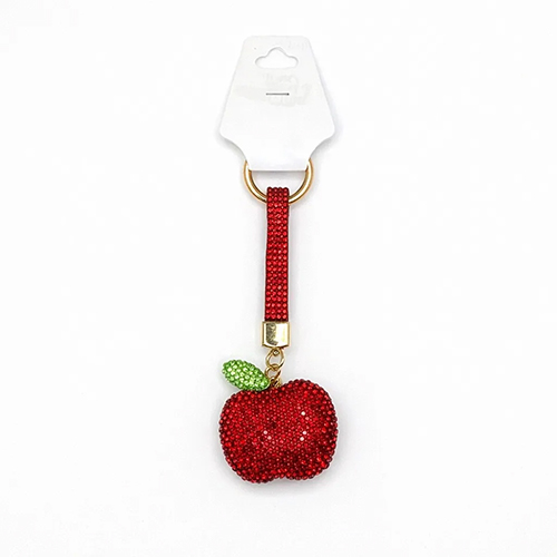 Брелок с карабином яблоко из страз, красный