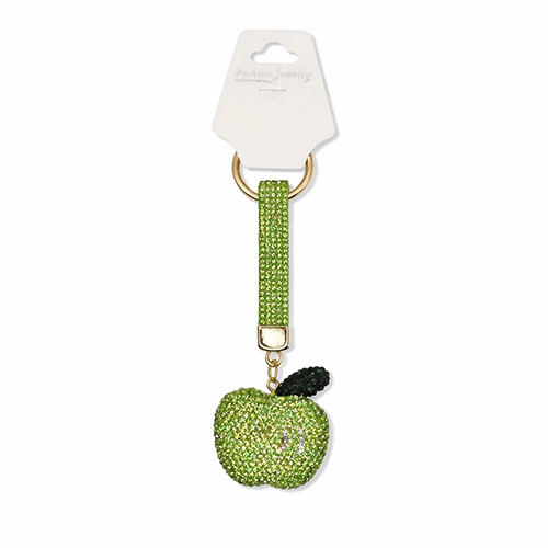Брелок с карабином яблоко из страз, зеленый