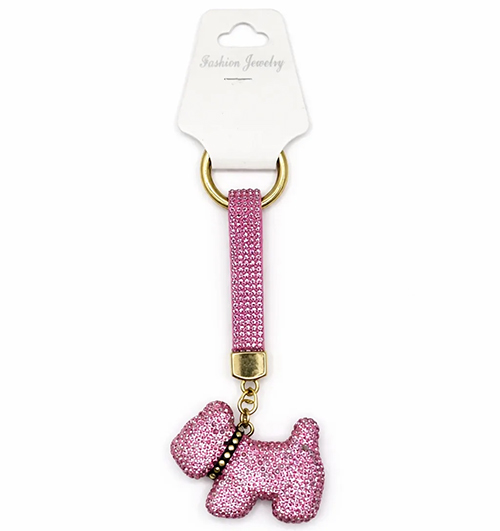 Брелок с карабином собака из страз, розовый